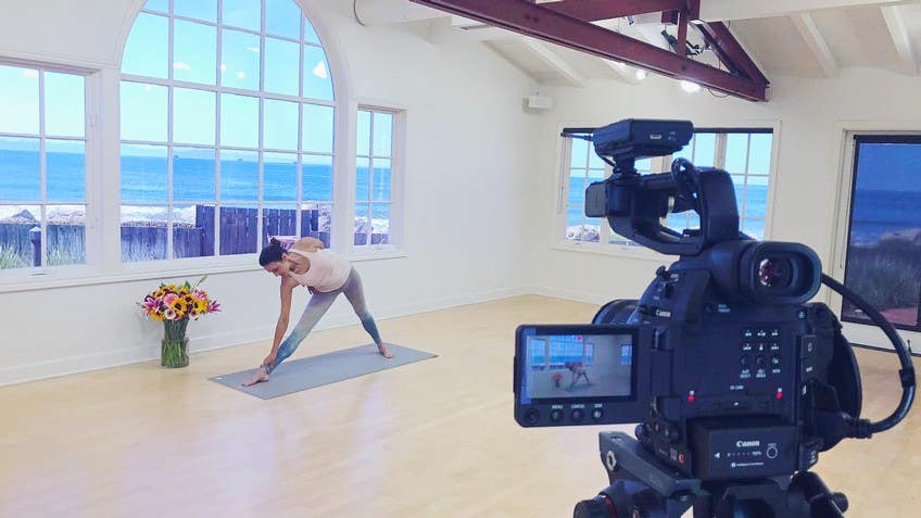 You will feel a lot more confident going into filming if you are comfortable and familiar with the sequences you've created. In yoga teacher training, we are taught to prepare and then be prepared to throw it all away when you see who shows up for class. Half of that equation doesn't apply here. Definitely be prepared AND you can't really know if you should throw it all away when you walk into the room because the only student staring back at you is a giant camera. This was probably the weirdest part of the entire experience—imagining that you are teaching students while trying to make eye contact with a zoom lens. The question became: How do you connect with students when they aren't actually present? From what I have discovered thus far, those who have most successfully broken down the screen-to-living-room barrier don't take themselves too seriously, and they trust and feel held in the teachings of yoga.