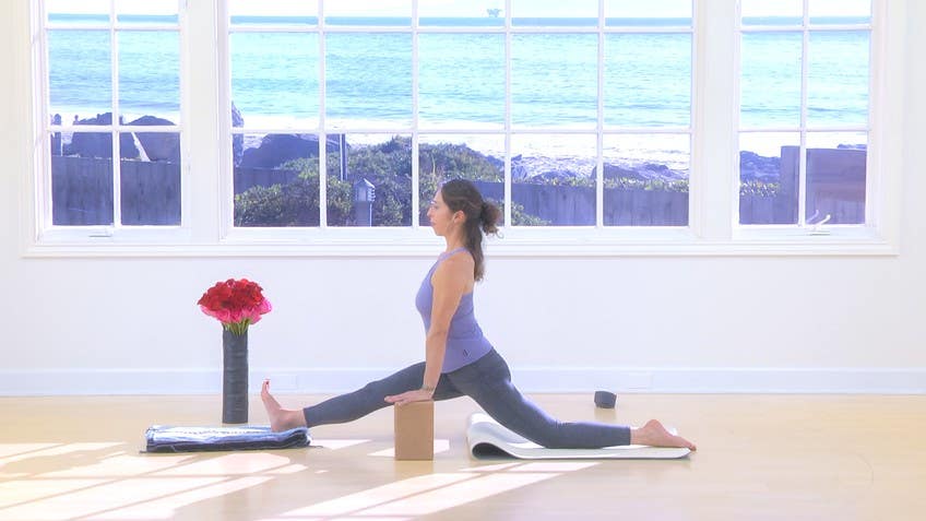 What You'll Need: Mat, Blanket, Strap, Block (2)