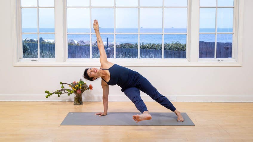 Looking at our challenges with a different perspective helps us see the lessons they offer. Ali leads a dynamic class to change our perspective and help us call on the energy of the Planet of Lessons. We move through standing sequences to open the body, strengthen the core, and sharpen our focus in preparation for Headstand. You will feel centered, balanced, and inspired.