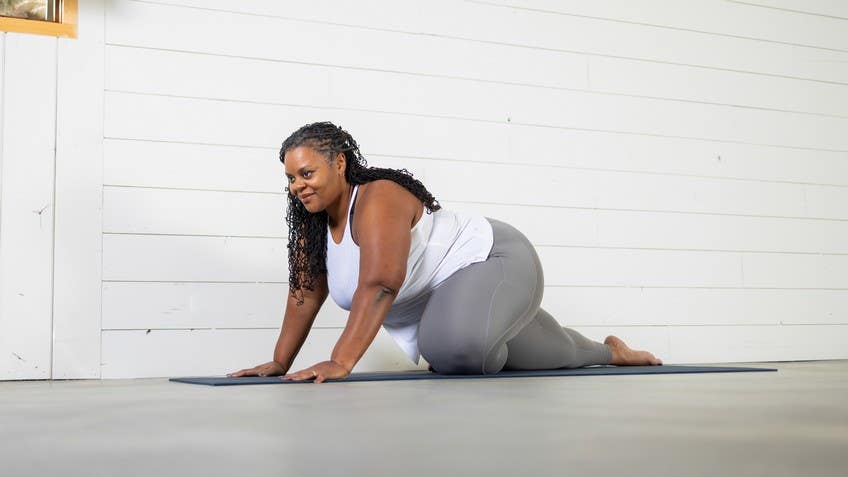 Join Tamika Caston-Miller for a brief but nourishing yin practice, where a blanket and two blocks provide essential support for deep relaxation. Mindful transitions guide you into poses like dangling forward fold, sleeping swan, and twisting deer, creating space for profound tissue release. The gentle sequence concludes with restorative rest, letting your body fully absorb the benefits of these longer-held postures.